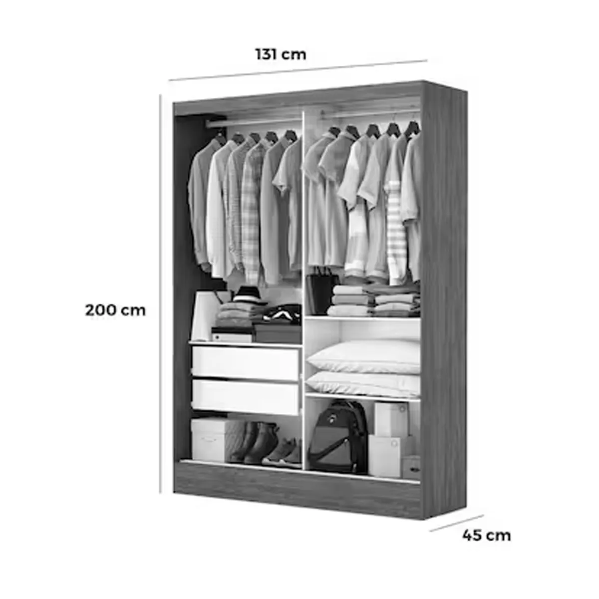 O Guarda-Roupa Dubai Plus c/ espelho 2 Portas é uma opção compacta e funcional para organizar roupas e acessórios. Com design elegante e espaços internos bem distribuídos, oferece praticidade e estilo para o seu quarto.