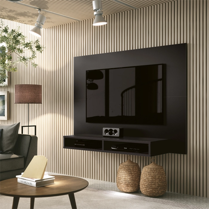 É uma nova linha de produtos com mais qualidade para a sua casa, com design moderno e sofisticado agregando charme e beleza ao ambiente. Ele conta com estrutura em MDP/MDF, proporcionando maior durabilidade ao produto. O Painel contém nicho inferior, ideal para aparelhos eletrônicos e objetos de decoração. O Painel Fox possui funcionalidade, beleza e design contemporâneo. Desenvolvido para TVs de até 43 polegadas.